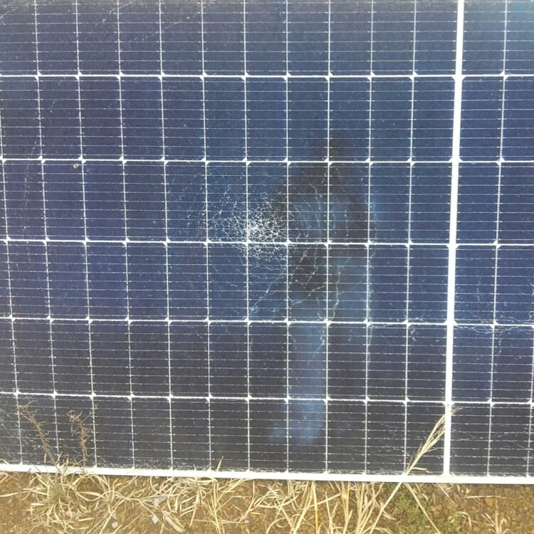 - 3月10日 無料の駆け付け対応を実施し、PCSの停止を解消。同時に現地で目視点検を行い、自然災害で割れたパネル2枚を発見。弊社で加入した補償制度へ申請。